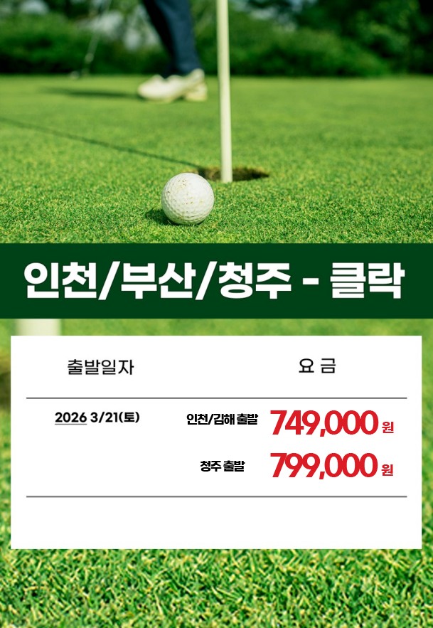 ๐ซ ์ธ์ฒ/๋ถ์ฐ/์ฒญ์ฃผ ์ถ๋ฐ → ํด๋ฝ ๋์ฐฉ