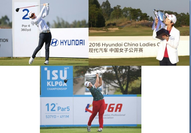 장하나 프로가 우승컵을 들었으며 2017년 김효주선수가