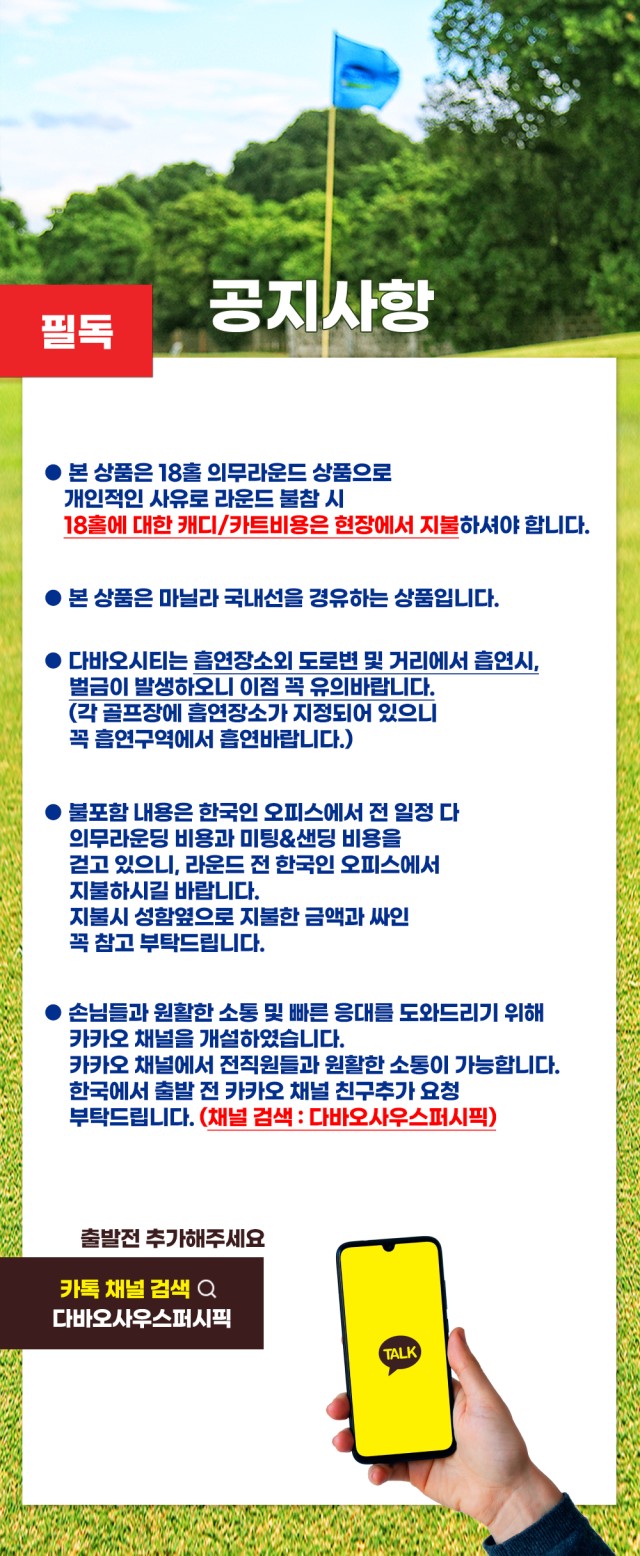 ● 현지 오후출발 항공편은 18홀 라운드를 제외시켜도 지상비는 동일합니다.