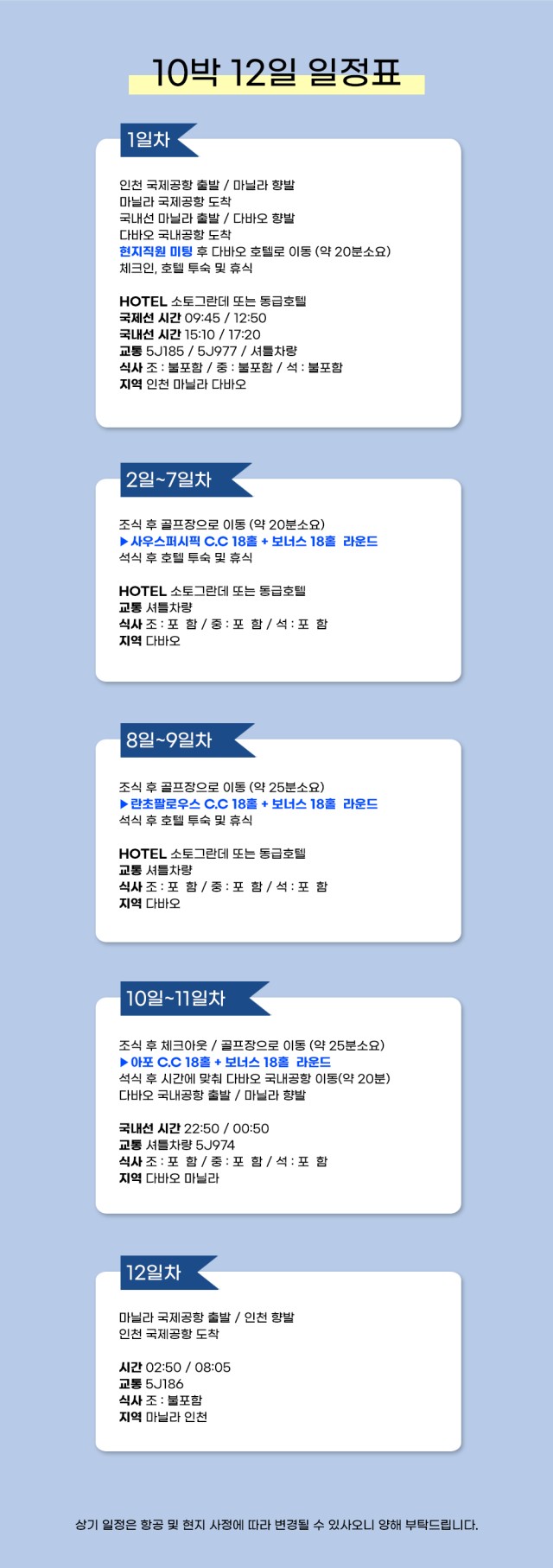 ✔공항-호텔-골프장 근거리 다바오 20분 내 소요시간~~