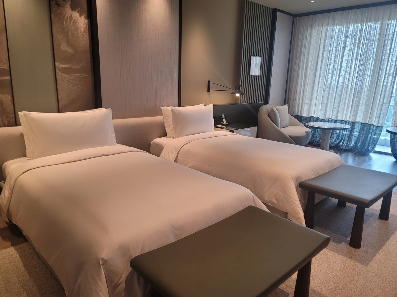 뉴월드 호텔에서 버기타 또는 도보, 셔틀버스 타고 뉴월드 호텔 상단에 있는 뉴월드 비치호텔은 카지노 기준으로 오른쪽은 스위트 호텔, 왼쪽이 비치호텔입니다. 23년 5월 오픈하였으며 모든 객실은 오션 뷰입니다. 지금 예약 하시면 디럭스 오션뷰로 업글 가능합니다. 카지노 손님 숙박용으로 지은 호텔이라 방도 제일 넓으며 욕조까지 비치되어 있습니다.