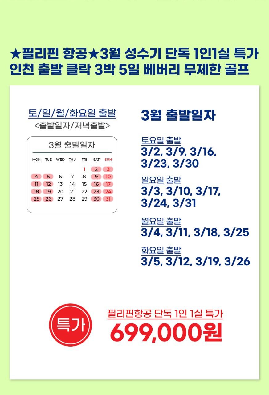 3์ ํ ,์ผ,์,ํ ์ถ๋ฐ์ ํน๊ฐ <1์ธ1์ค> - 699,000์