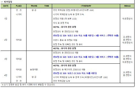⛳골프스케쥴 : 3박 4일 (0-27-27-18)