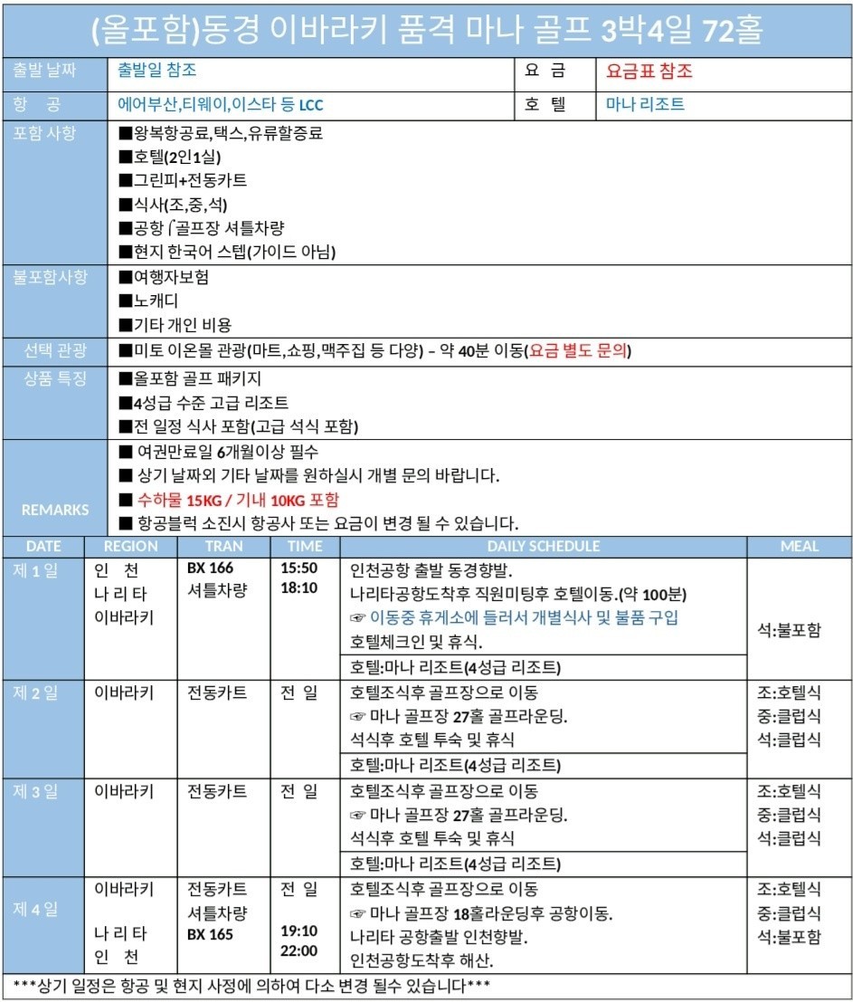 ⛳일본 동경 마나G.C 3박4일 72홀 올포함 <단2회>
