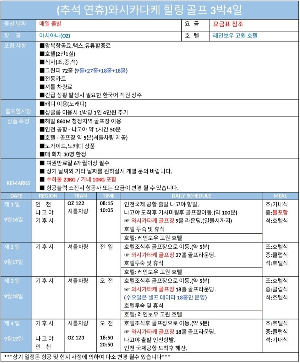 ⛳나고야 추석연휴 라스트 힐링 골프 올포함 ⛳