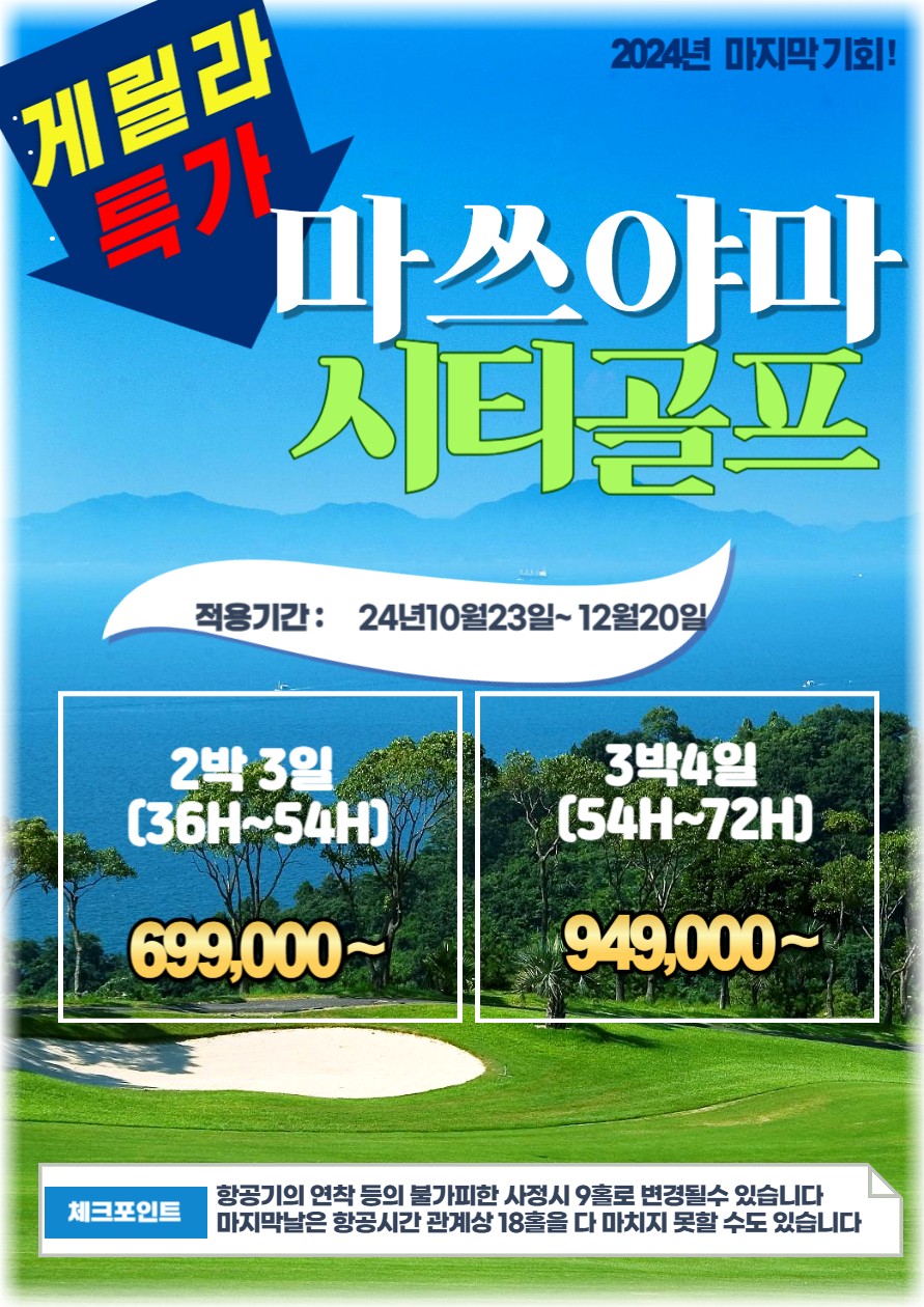 🍀★인천출발 마츠야마 골프 36홀~54홀 게릴라 특가★