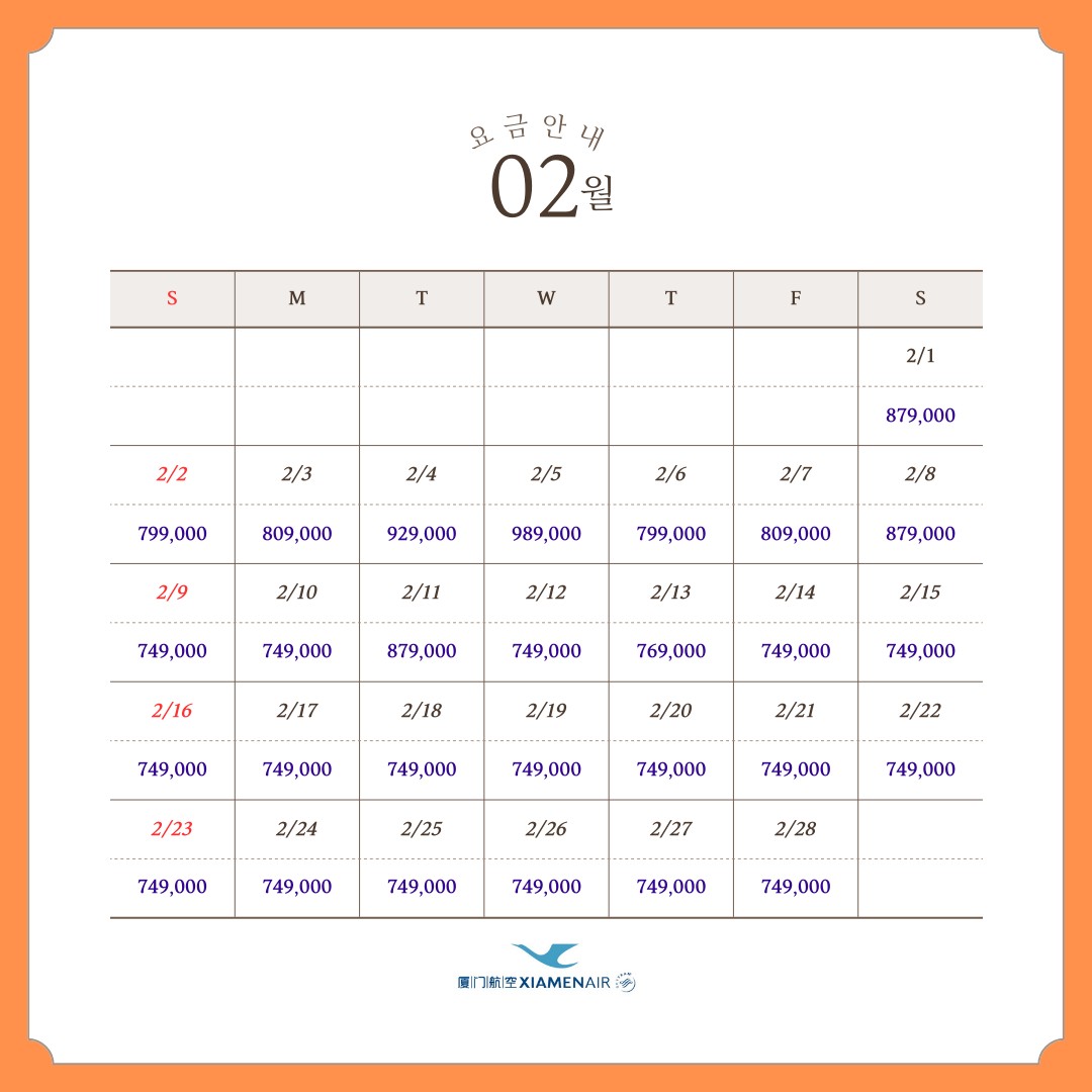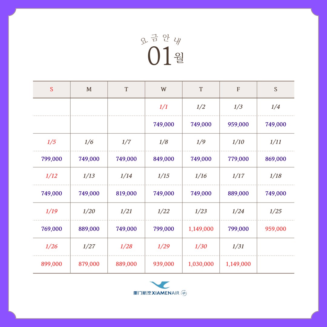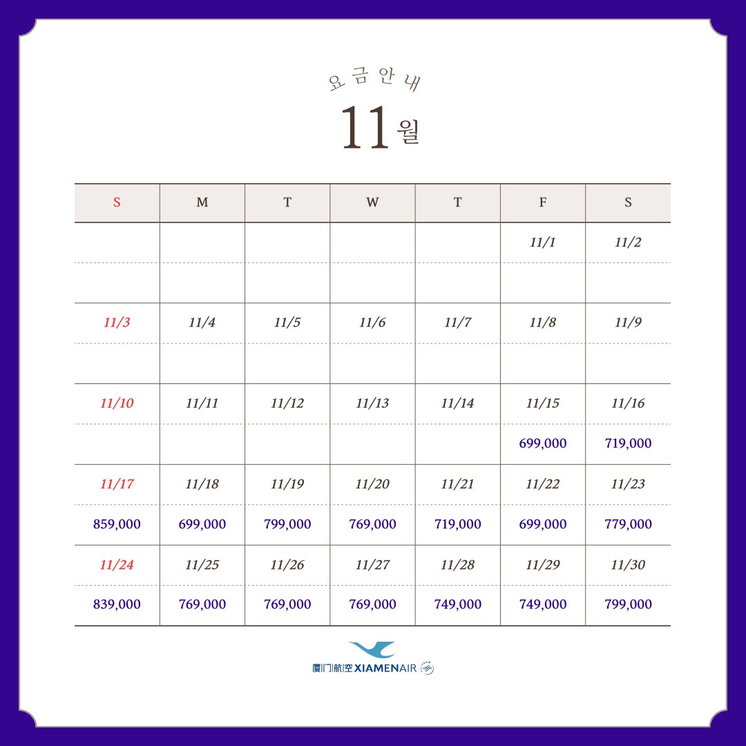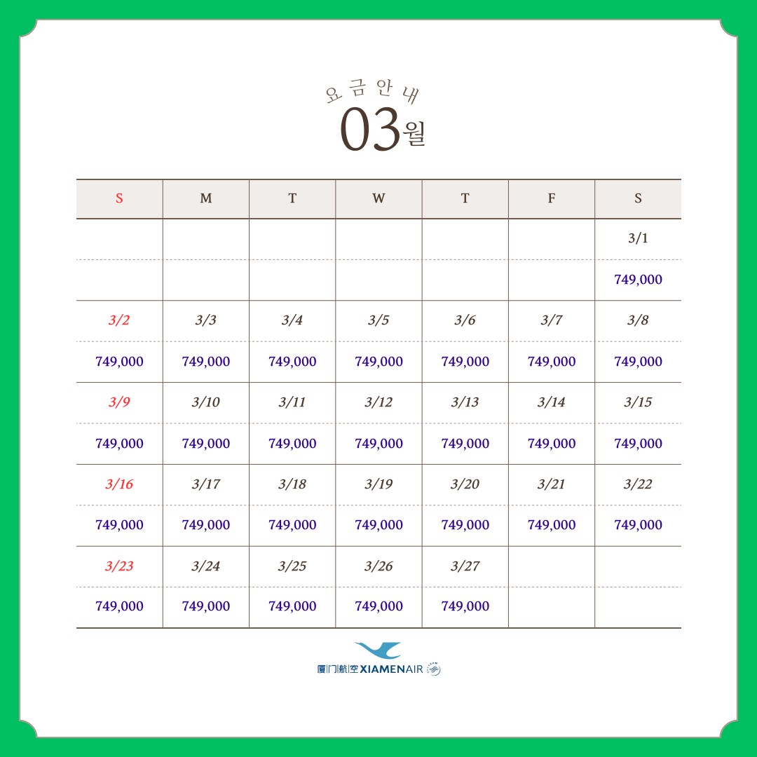*대한항공 스케쥴은 별도 문의! (하문항공 공동운항 다수)