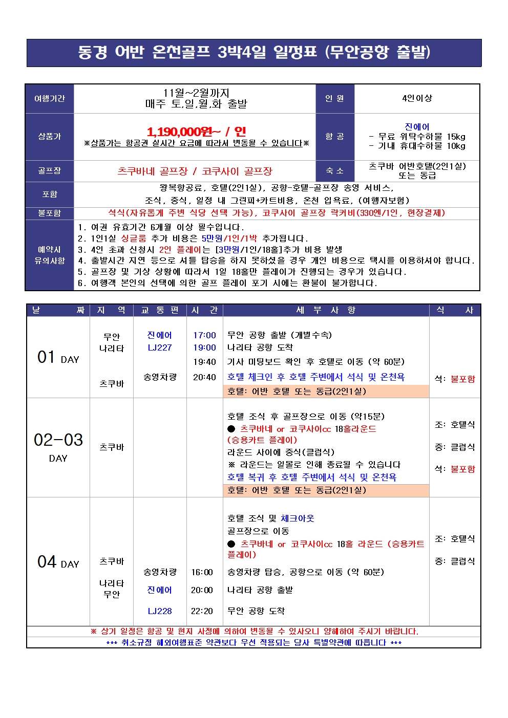 #무안출발 #일본골프 #동경골프 #이바라키 #시내호텔 #온천최고 #4인이상