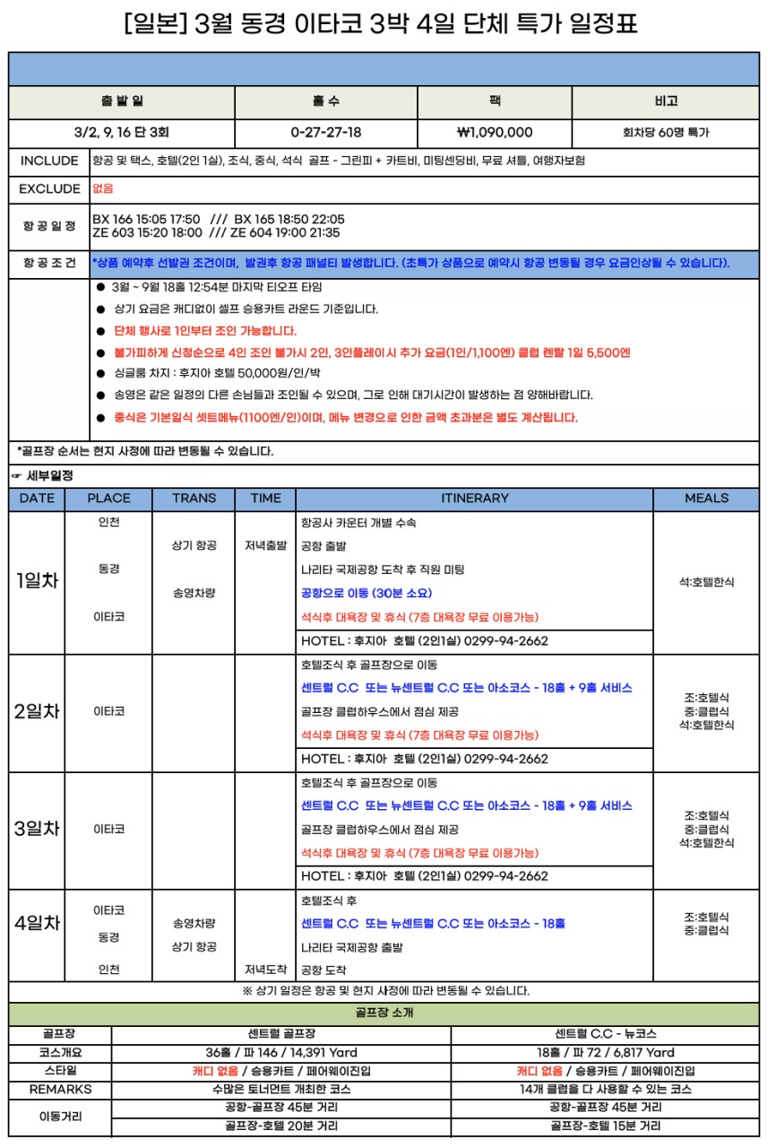 #일본단체모객 #동경골프 #3월봄골프 #초특가 #완전올포함 #109만원