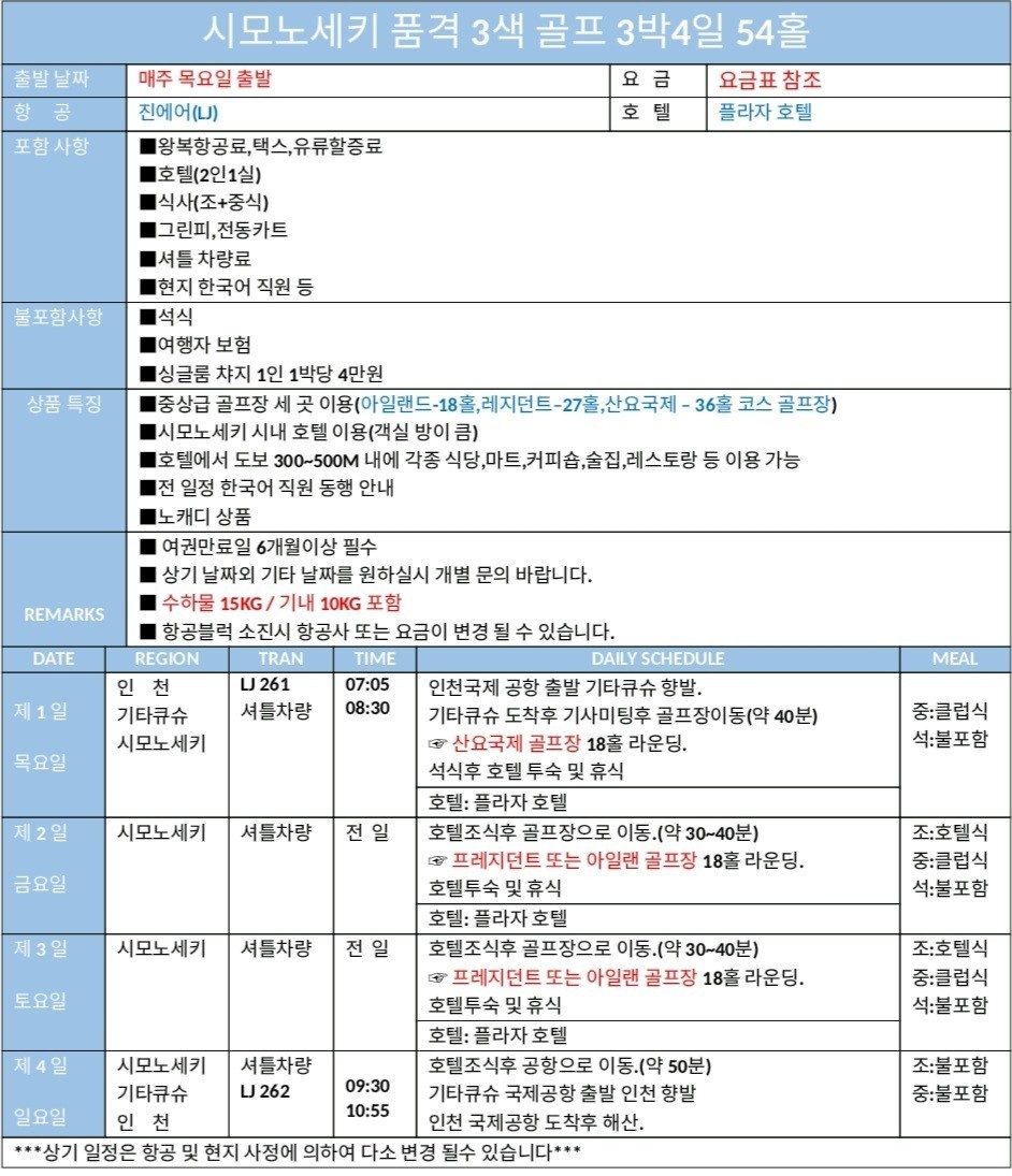 ⛳️골프스케쥴 : 18-18-18-0 <목/금 출발>