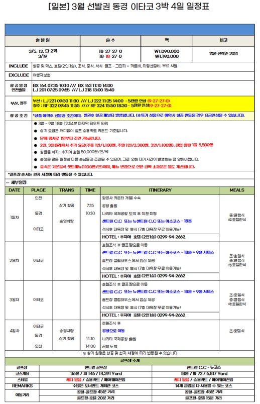 #일본단체모객 #동경골프 #3월봄골프 #초특가 #완전올포함 #109만원
