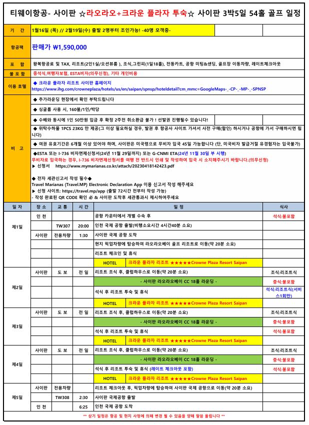 #사이판골프 #라오라오베이 #시내호텔 #1월16일/2월19일 #특가