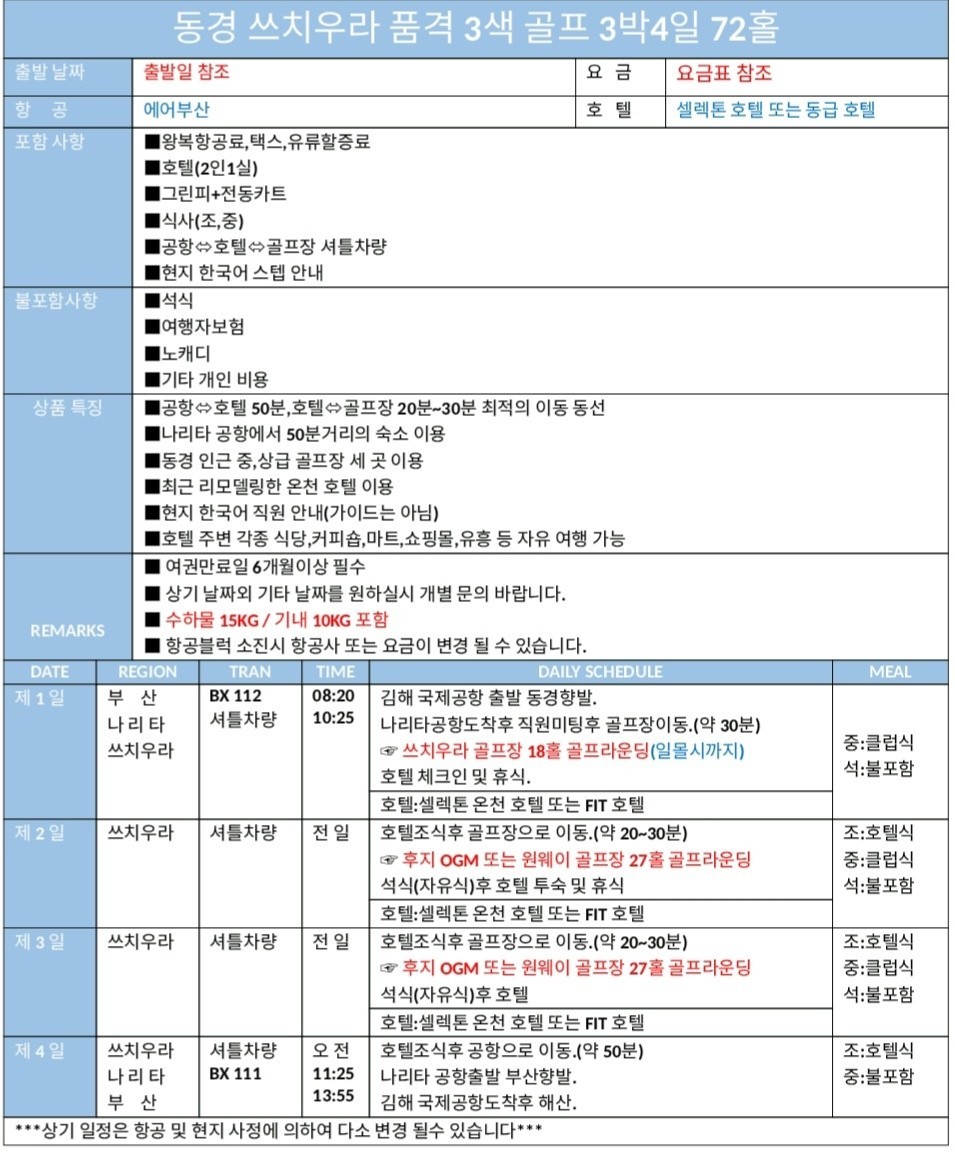 ⛳ [3월특가] 동경 쓰치우라 품격 3색💟