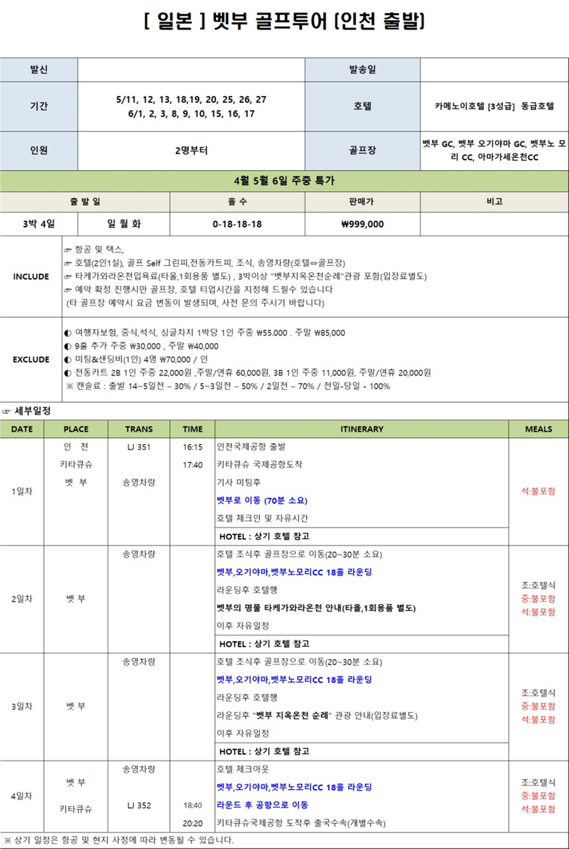 ⛳️골프스케쥴(3박4일) : 0-18-18-18