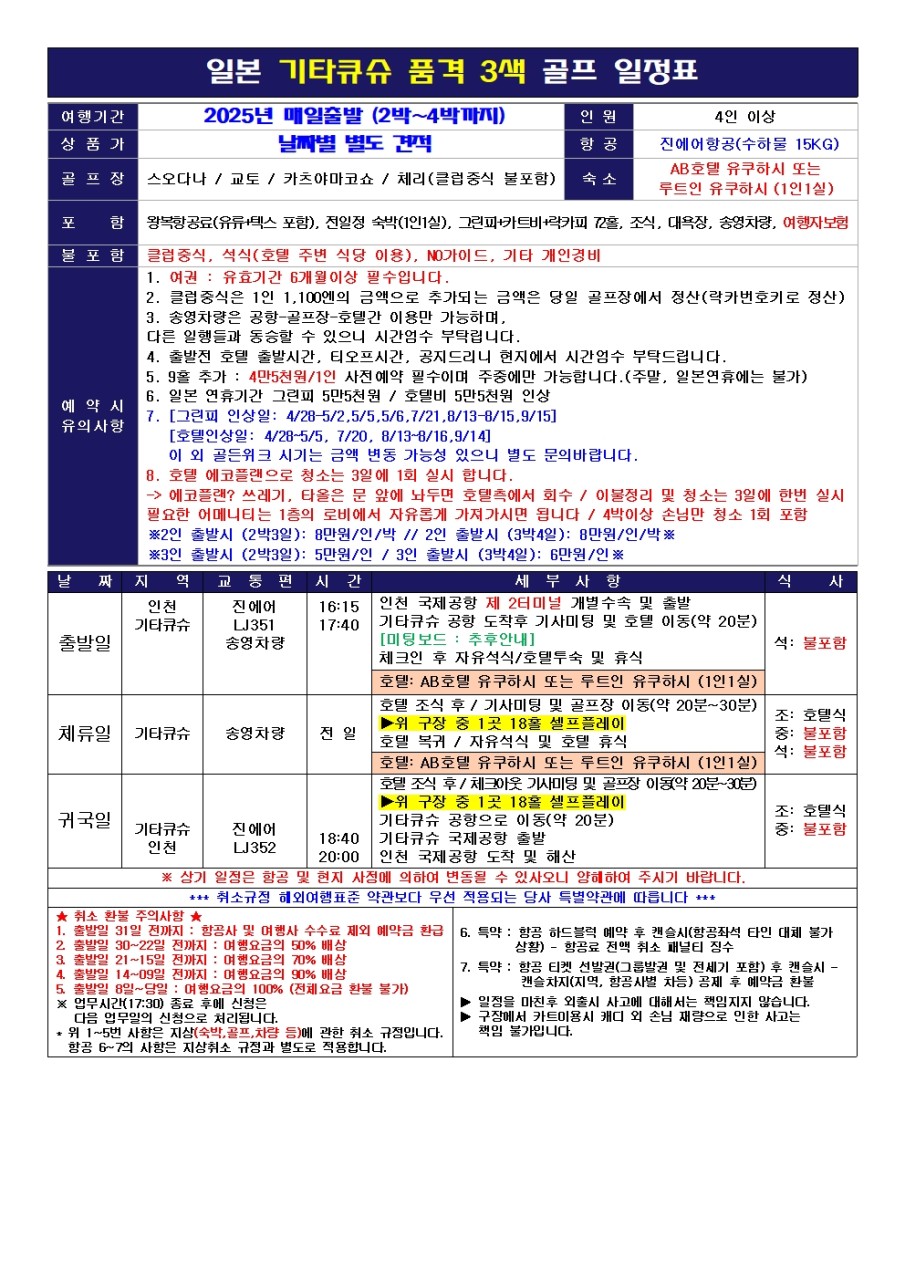 ⛳기타큐슈 품격 힐링 골프<3박4일>⛳