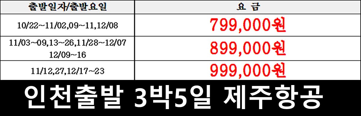 인천 출발 (제주항공) → 799,000원~