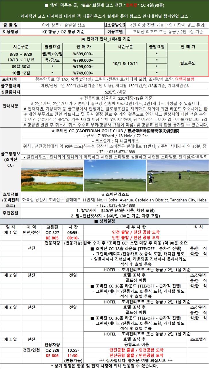 ⛳중국 천진 조비전 골프 3박4일⛳