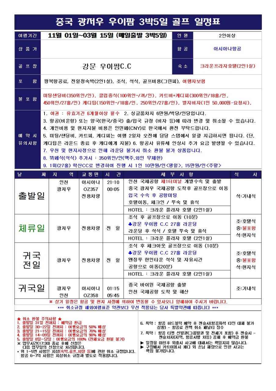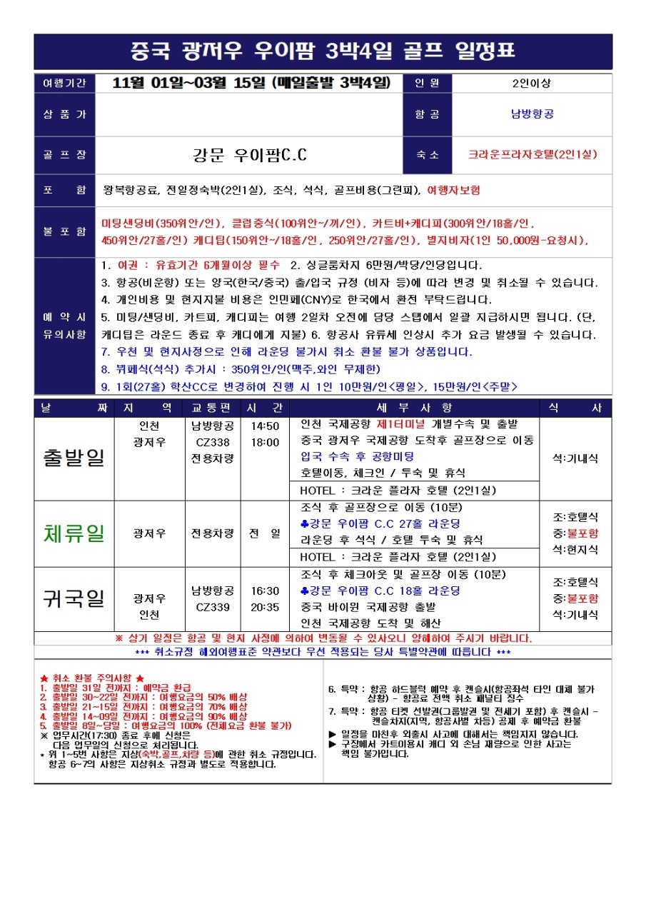 โก2์ธ1์นดํธ, 2์ธ1์บ๋ (๋จ, ๊ณจํ์ฅ ์ํฉ์ ๋ฐ๋ผ ๋ณ๊ฒฝ๋ ์ ์์ต๋๋ค.)