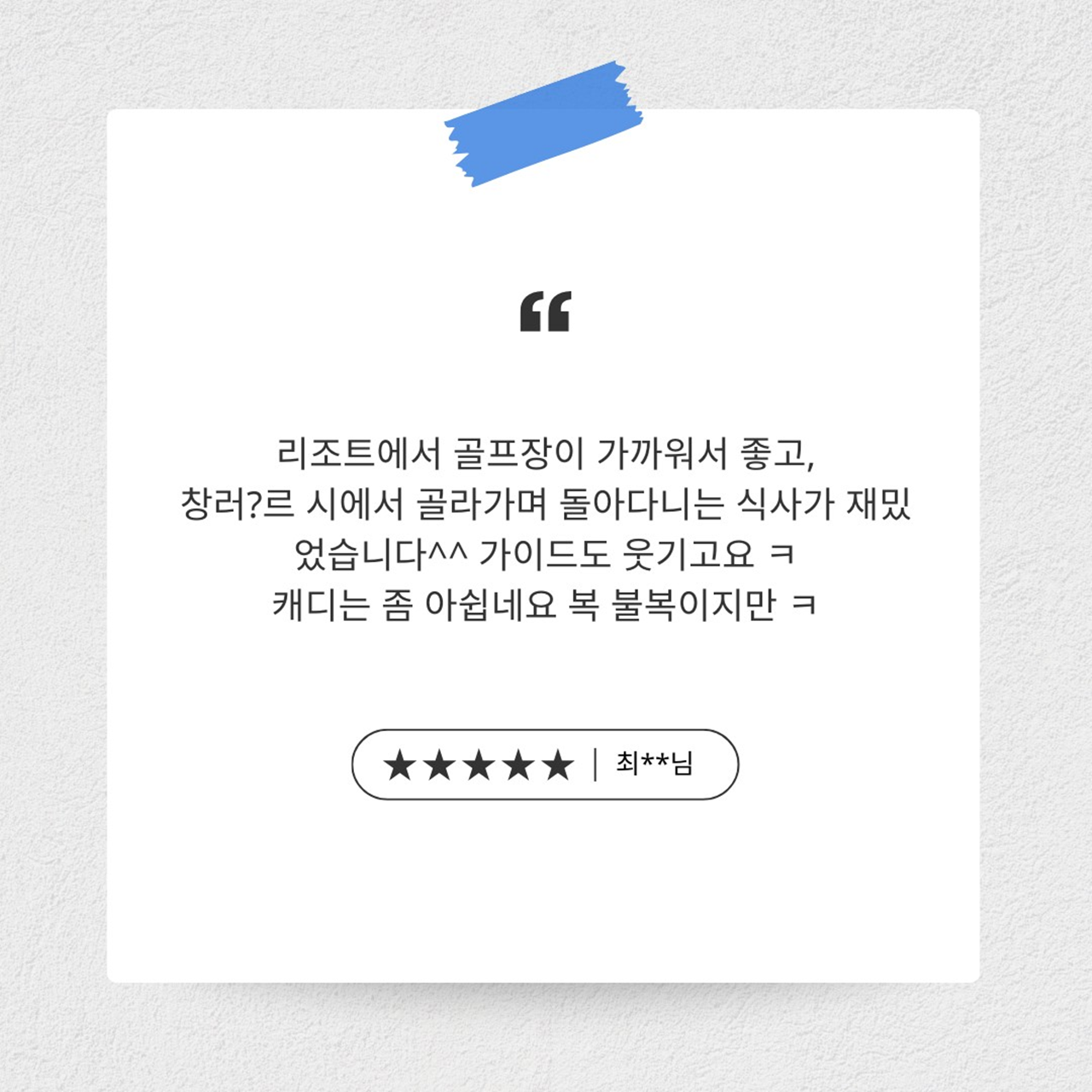 *ํ๊ตญ์ด ์ง์ (๋ฆฌ์กฐํธ - ๊ณจํ์ฅ ์ด๋์ฐจ๋)