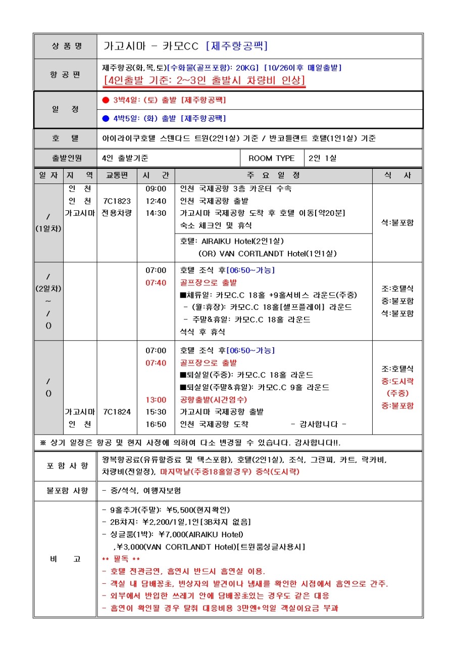 ⛳️가고시마 카모 골프 & 시내 호텔 💕<3박/4박>