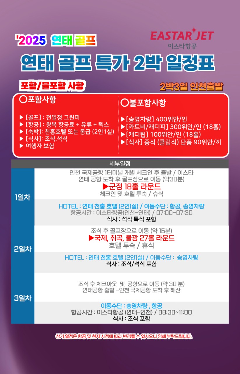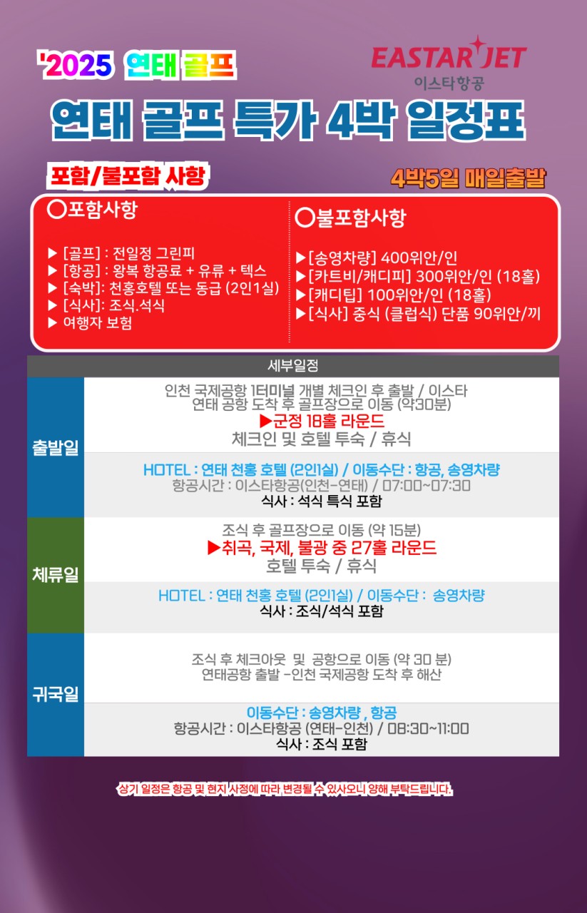 ⛳[가을골프특가] 중국 연태 골프 <2박/3박/4박>