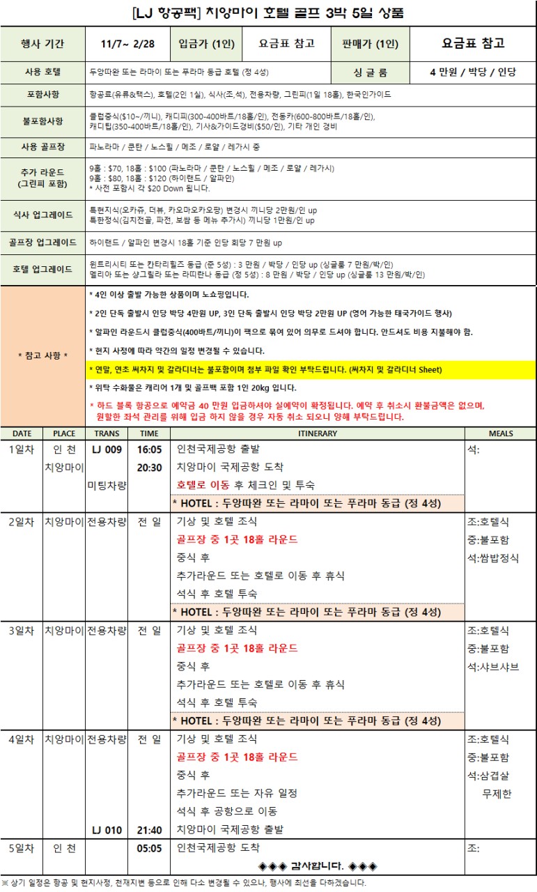 ๐ทํญ๊ณต์๊ฐ : 16:05~20:30 / 21:40~05:05