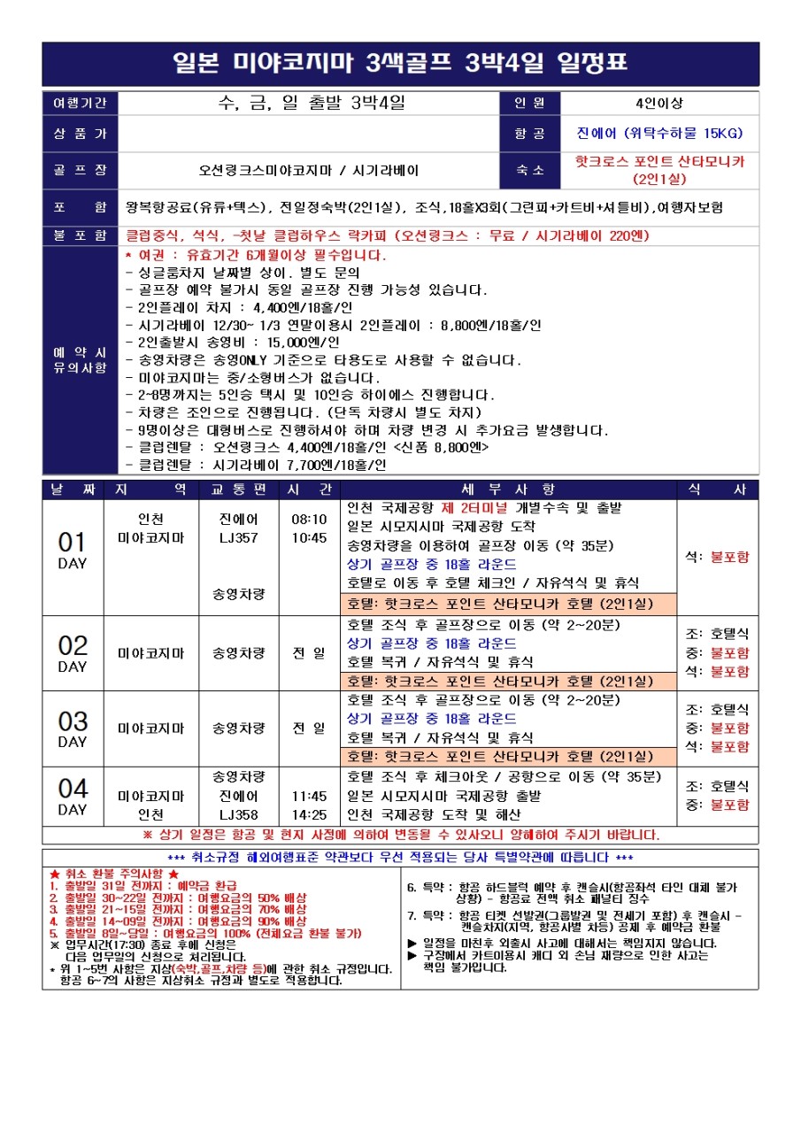 - 골프장 예약 불가시 동일 골프장 진행 가능성 있습니다.