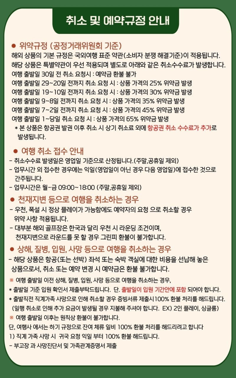 🔹 기본 라운딩 : 출발일 18홀 / 체류일 18홀 / 귀국일 무플레이
