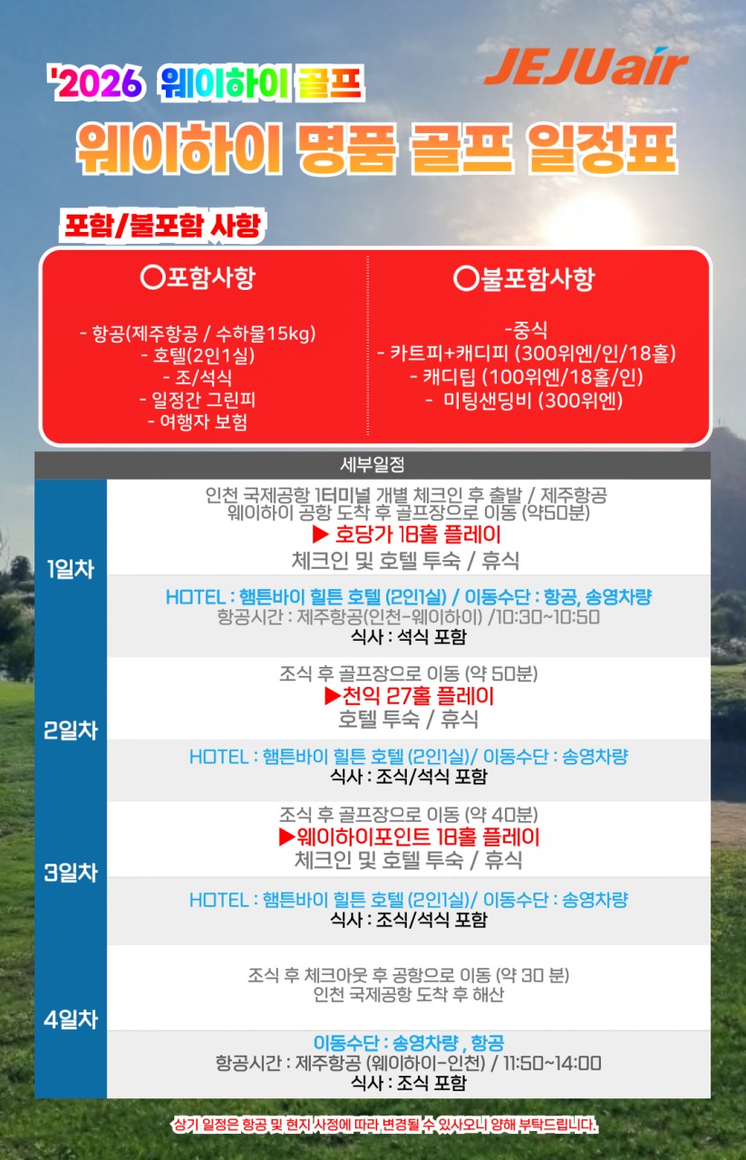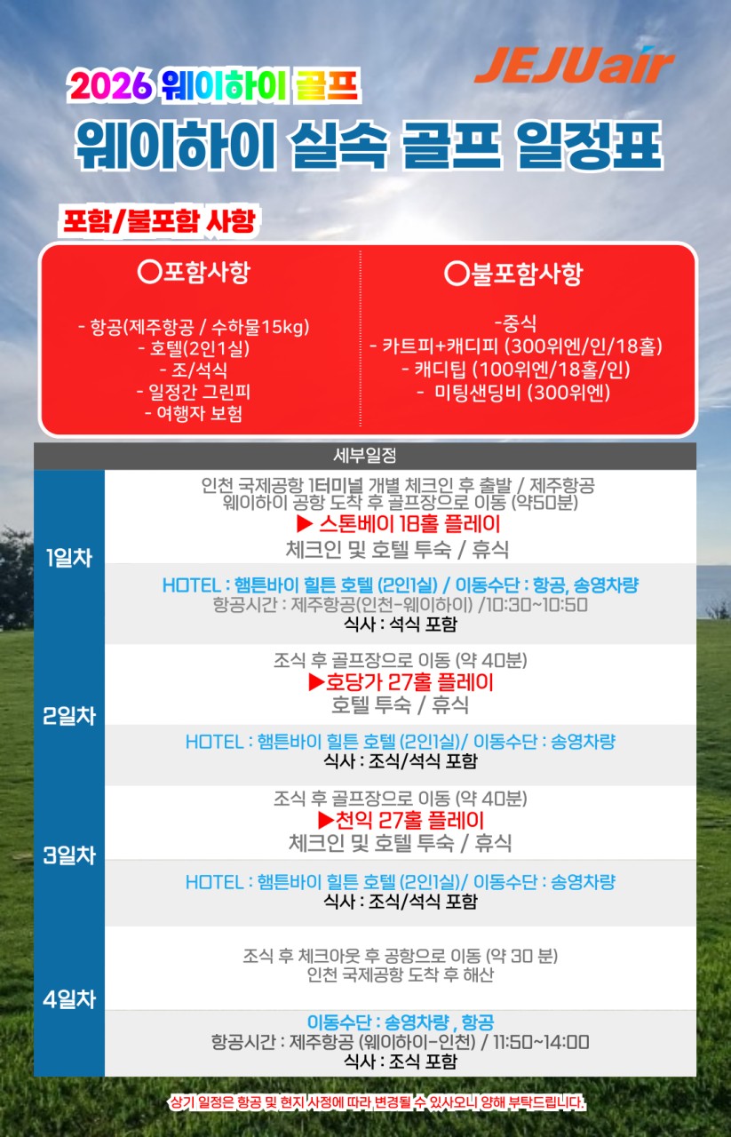 ⛳️2026년 중국 위해(웨이하이) 골프 3박4일 ⛳️