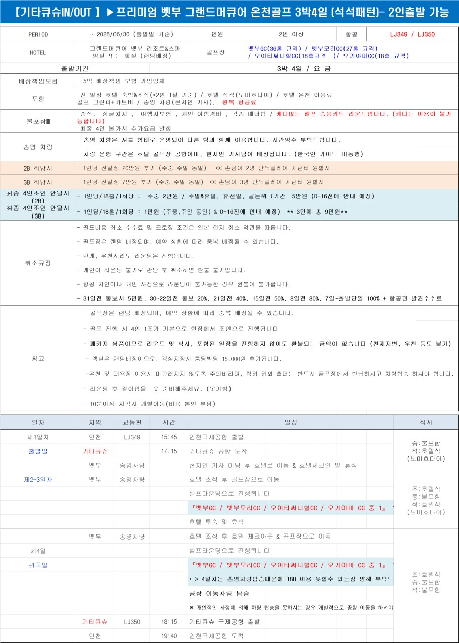 ∎패키지 상품으로 식사, 숙박, 라운딩 안하셔도 환불되지 않습니다.