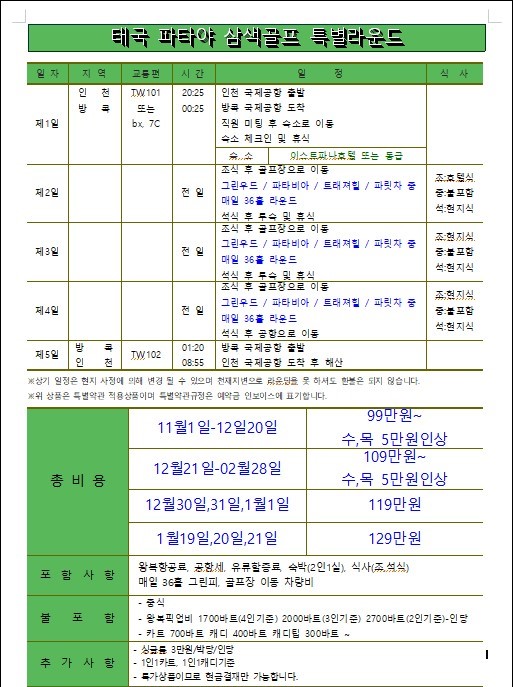 🛑일 정 : 3박5일 (108홀)