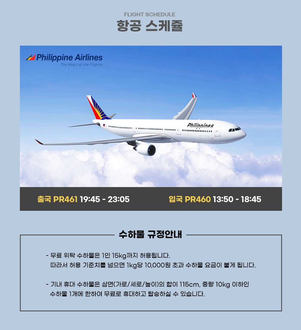 부산 – 클락 ➡️ PR461 19:45 - 23:05