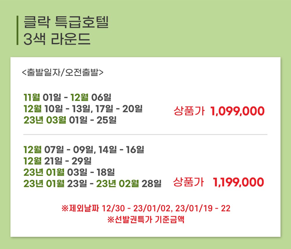 총 54홀 3색 골프&호텔 5일 1,099,000원~