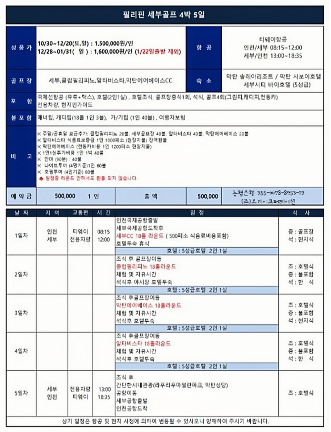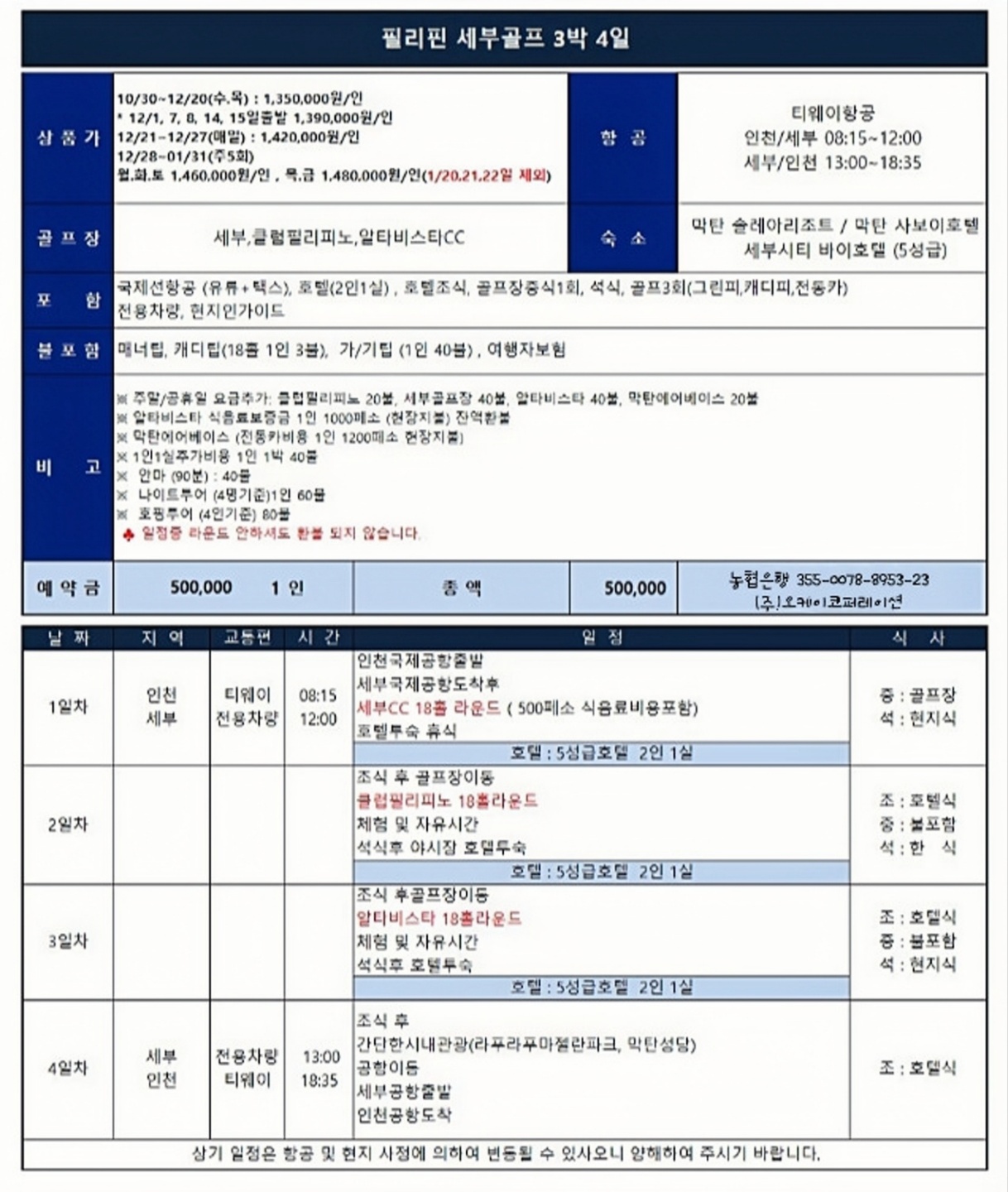 🌈 인원: 4인출발기준 (2인, 3인출발시 추가비용있음)