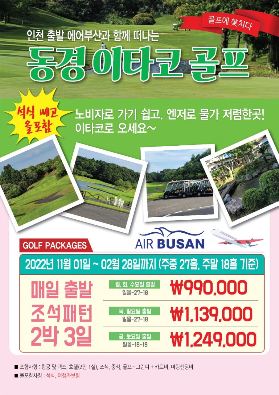 골프장 (10분 ~15분 소요) > 공항 (40분 ~50분소요),