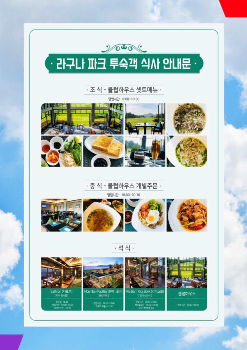 중/석식, 캐디팁(18홀당 $15 혹은 30만동), 기타 개인경비