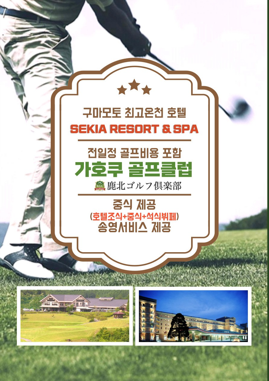 ♨세키아리조트&스파호텔 + 가호쿠골프 (중식까지 ALL포함)