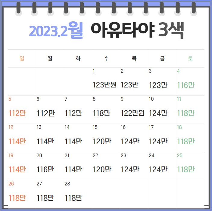 🔸️매주 일,월,화 출발 -> 112만원~