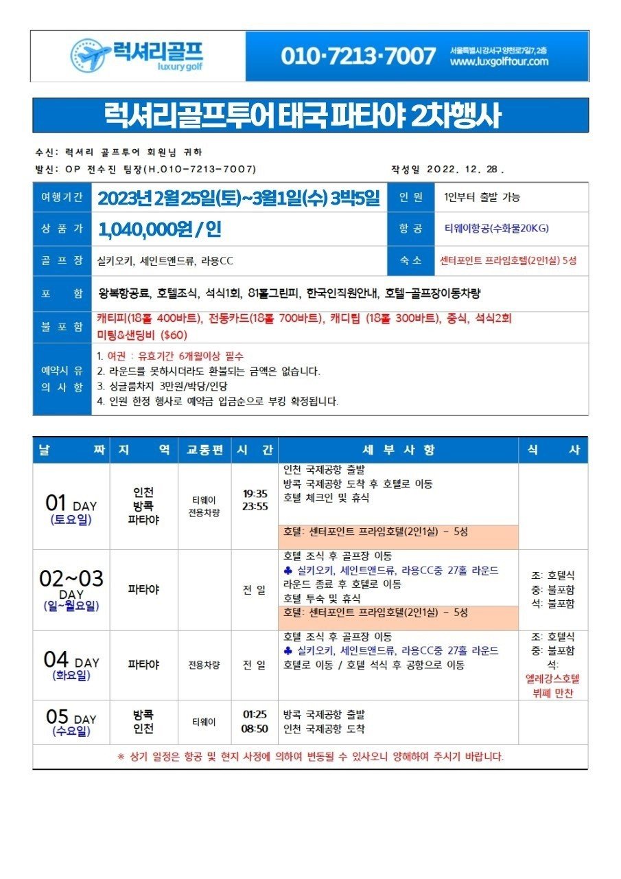 2023년 2월 25일~3월1일 (토~수) 3박5일