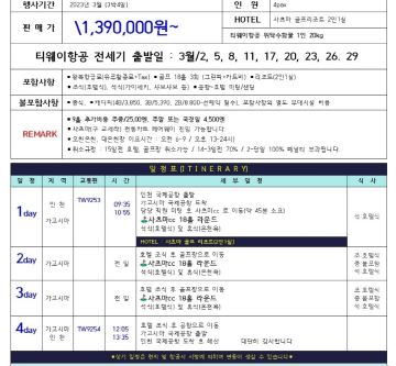 티웨이항공 3박4일 54홀 1,390,000