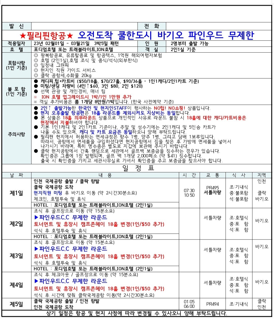 🛫필리핀항공 인천출발 클락-쿨한도시 바기오 무제한 골프 라운드