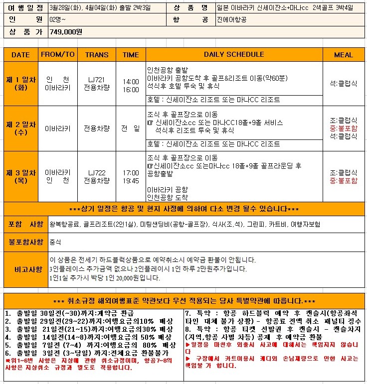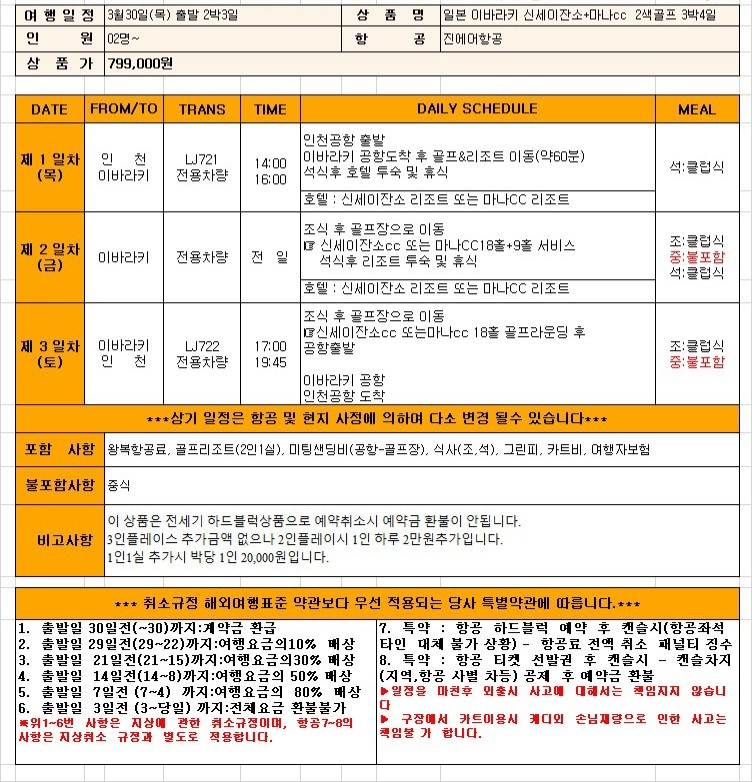 단 이상품은 이바라기 IN 나리타 OUT 상품입니다.