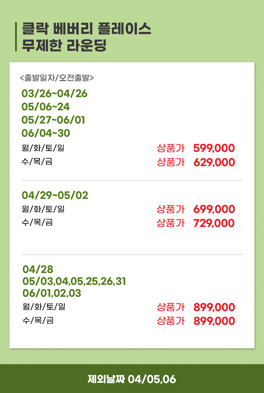 ★진에어 특가★선발권 베버리 무제한 3박5일 599,000~