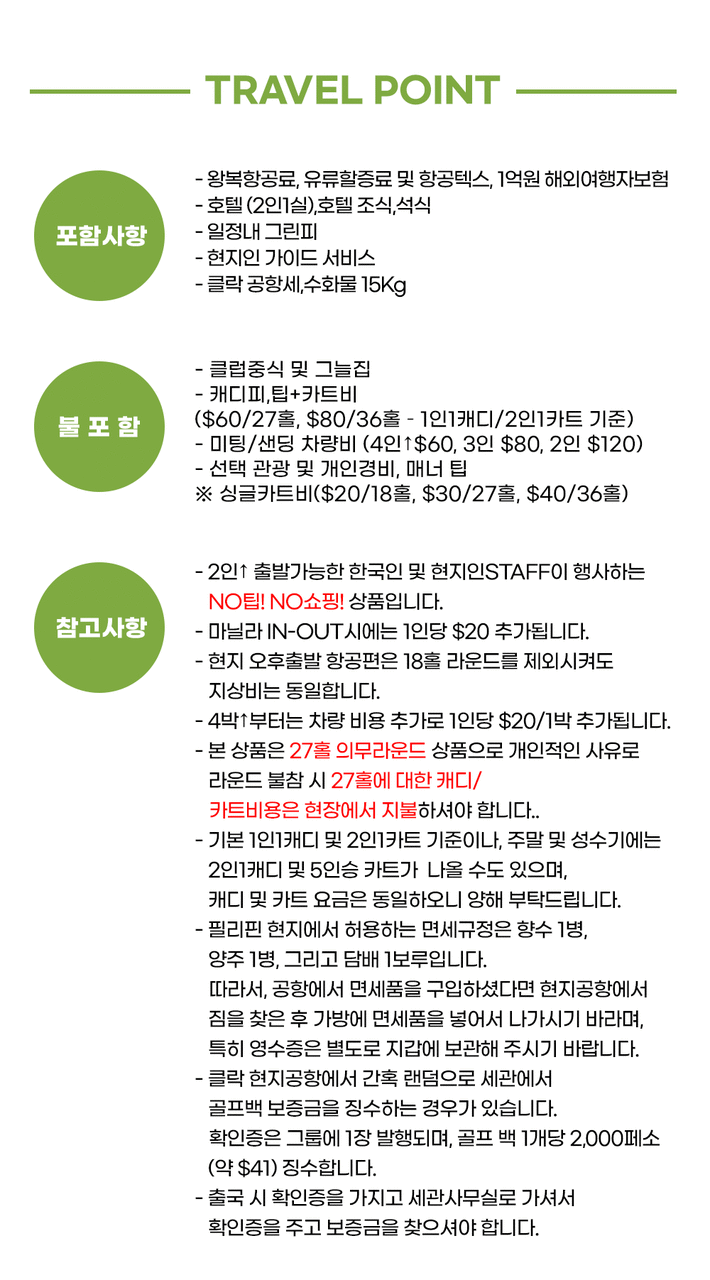 현지가이드 서비스,클락 공항세,수화물 15Kg