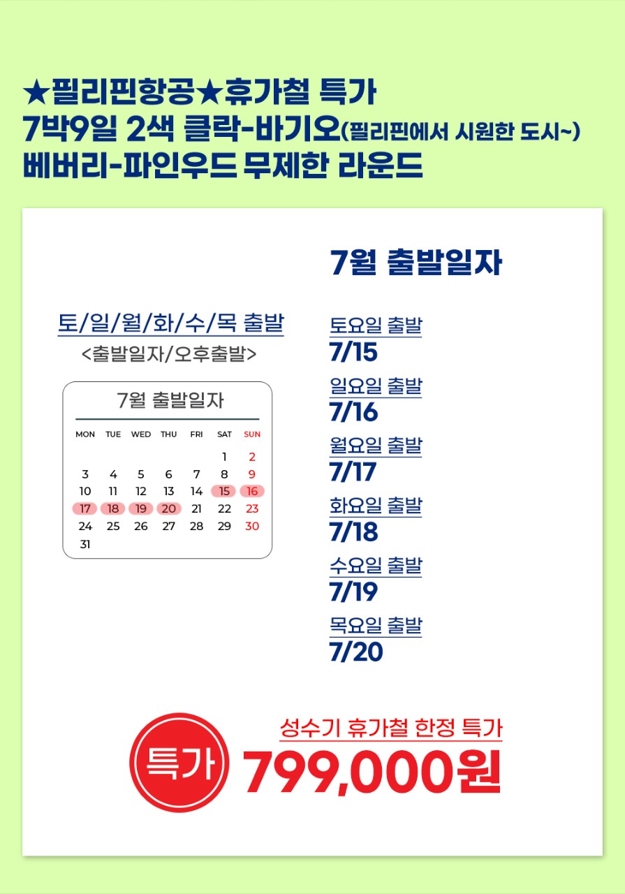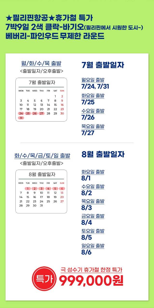 ✈쿨한도시 바기오 + 클락 무제한 라운드 7박9일✈