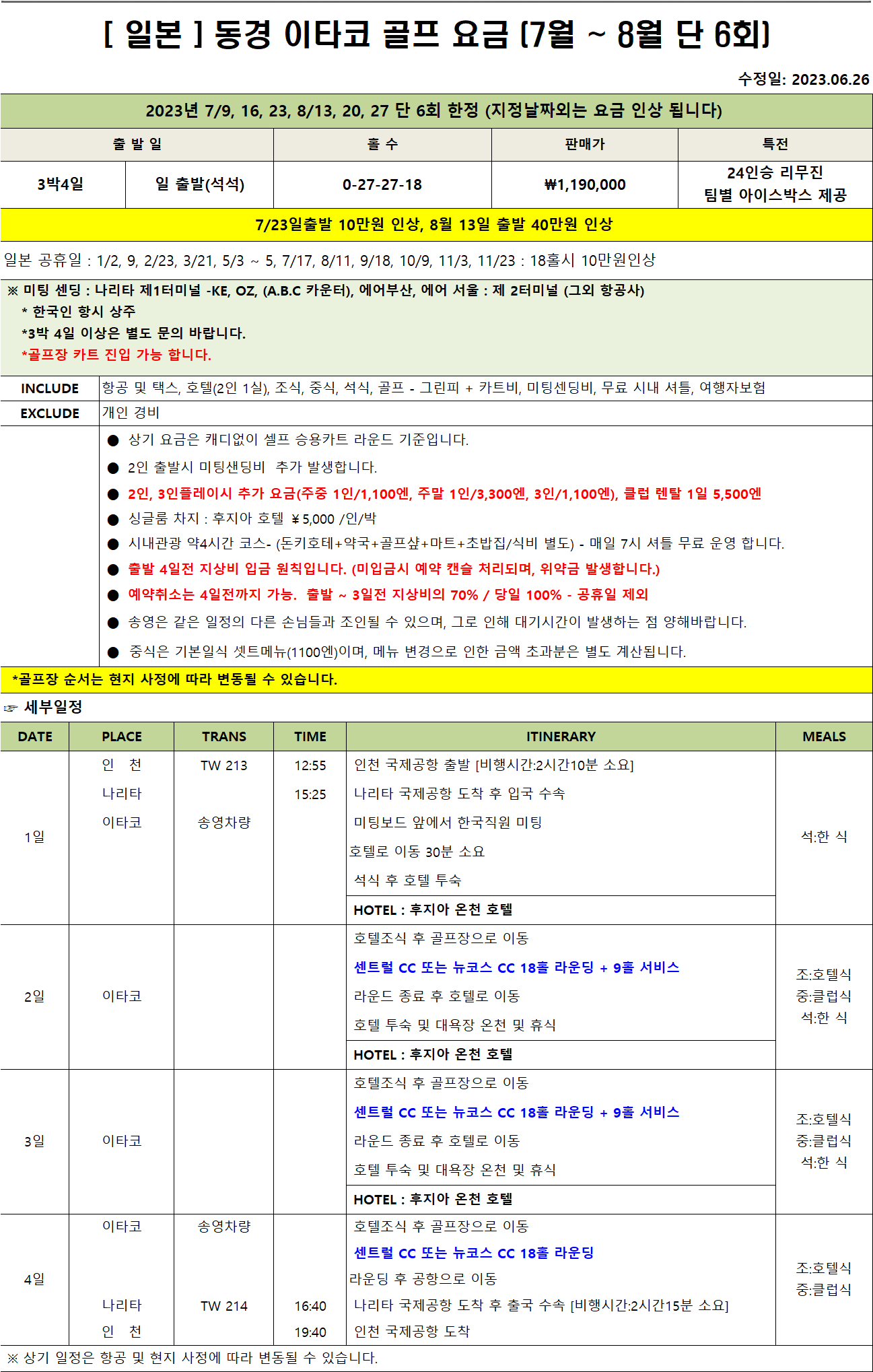 <7์9์ผ, 16์ผ, 23์ผ / 8์13์ผ, 20์ผ, 27์ผ>