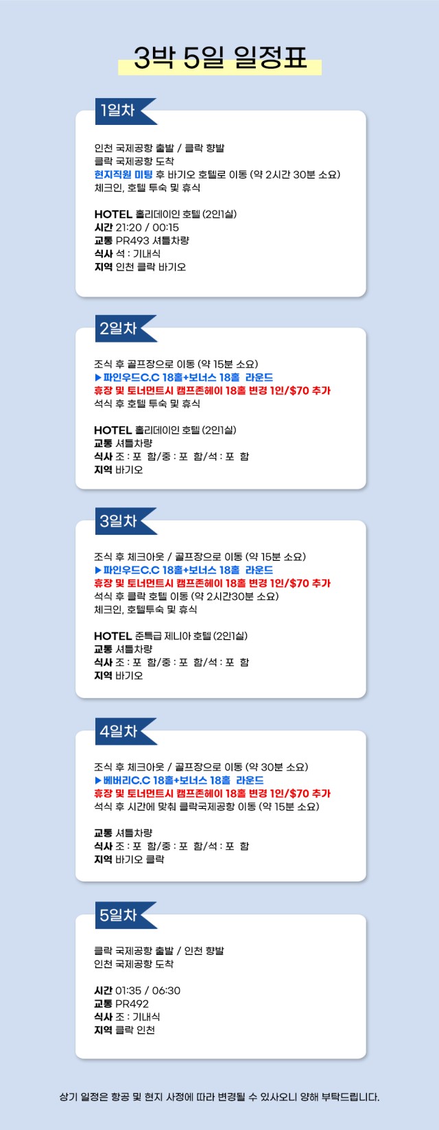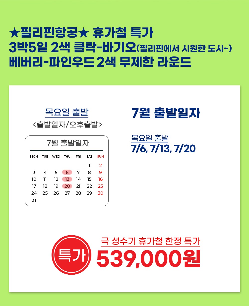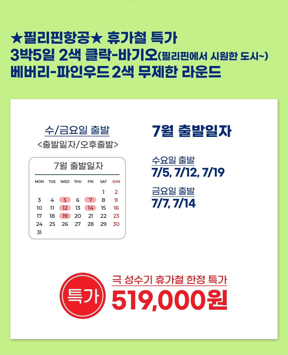 ✈쿨한도시 바기오 + 클락 무제한 라운드 3박5일✈